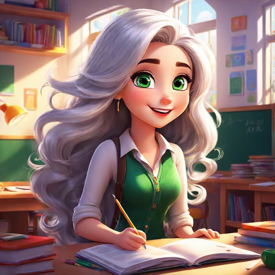 Once upon a time, in a small town filled with magical beings, there was a remarkable teacher named Miss K. With her long flowing silver hair and sparkling emerald eyes, she captivated the hearts of her students. Every day, she would inspire them with her stories and help them unlock their creativity. One sunny afternoon, after a particularly magical writing lesson, Miss K announced, "My dear students, I have a special quest for you today!"